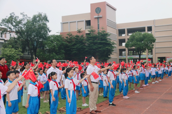 升旗儀式結(jié)束后,師生們揮舞著手中的五星紅旗,共同合唱隊歌,表達(dá)對祖國的熱愛,這一刻,全體師生與祖國的心緊緊連在一起,都為身為中國人而自豪,共同祝福祖國母親生日快樂,祝愿祖國越來越好。當(dāng)天,師生們還積極與國旗合影,為祖國喝彩,小小的國旗,揮灑著他們內(nèi)心的小小愛國情,民族自豪感在每一個學(xué)生的心中生根發(fā)芽,也為今后學(xué)生的健康成長奠定了基礎(chǔ)。