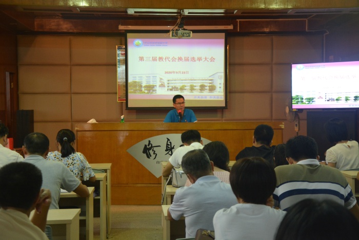 9月23日下午,沙欄中學(xué)第三屆教師代表?yè)Q屆選舉會(huì)議在該?!昂兔罉恰比龢菚?huì)議室召開,會(huì)議由范立宇副書記主持。
