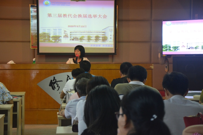 在清點(diǎn)完參會(huì)人數(shù)后,學(xué)校支部書記、校長(zhǎng)梁炳華帶領(lǐng)全體教師學(xué)習(xí)了《中山市沙欄中學(xué)第三屆教代會(huì)換屆選舉方案》;并對(duì)中秋、國(guó)慶假期校園的安全工作做了強(qiáng)調(diào)。