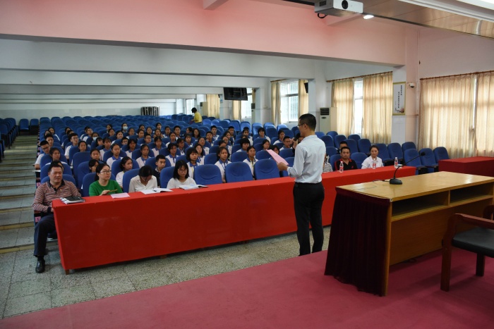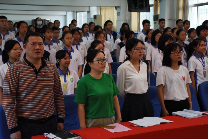 在10月11日“世界視力日”即將來臨之際, 10日下午三角中學(xué)在博愛樓報告廳舉行視力健康管理隊伍集中履職儀式。德育處覃子湘主任主持儀式并講話,溫結(jié)聯(lián)校長、全體班主任代表、家長代表、校醫(yī)和各班視力健康委員共同參加履職儀式。