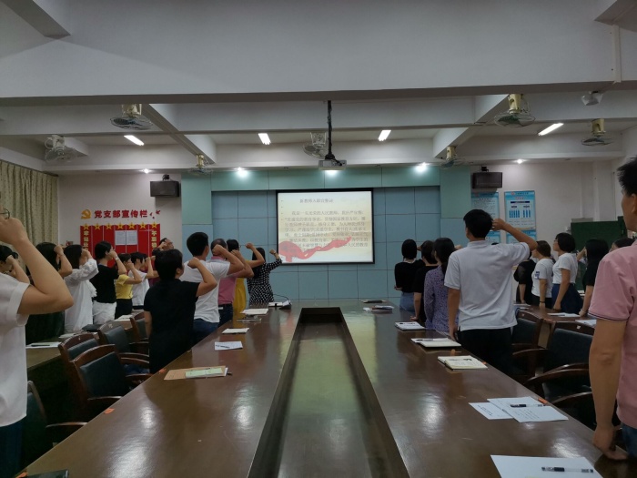 活動(dòng)的第一個(gè)議程,段美娟副校長帶領(lǐng)近三年新入職的青年教師們進(jìn)行莊嚴(yán)的宣誓儀式,接著,全體教師也一起重溫了誓詞,這次的宣誓儀式,敲起了老師們從教的初心,堅(jiān)定了教師的職業(yè)信念和職業(yè)操守,增強(qiáng)教師職業(yè)幸福感、榮譽(yù)感。第二部分,德育處干部帶領(lǐng)在座教師共同學(xué)習(xí)《嚴(yán)禁中小學(xué)校和在職中小學(xué)教師有償補(bǔ)課的規(guī)定》《嚴(yán)禁教師違規(guī)收受學(xué)生及家長禮品禮金等行為的規(guī)定》,要求全體教師認(rèn)真學(xué)習(xí)文件,增強(qiáng)自身的思想政治素養(yǎng)和行為規(guī)范意識(shí),自覺做到不進(jìn)行有償補(bǔ)課、不收受學(xué)生和家長禮金等違反規(guī)定的行為。第三部分,全體老師一起觀看了學(xué)校師德典型黃寶盈老師的微視頻《教壇鑄師魂 大愛育桃李》,學(xué)習(xí)身邊的榜樣。