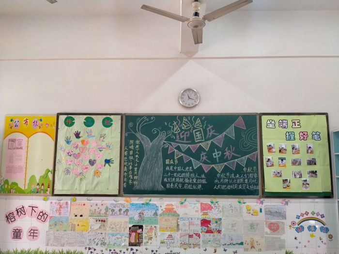 此外,光明小學(xué)還開展“迎中秋 慶祝國慶”黑板報評比活動,各班黑板報都做到了主題鮮明、版面醒目、結(jié)構(gòu)合理、圖文并茂、設(shè)計美觀。他們有的贊美花好月圓的中秋情思,有歌頌中華人民共和國成立71周年以來祖國的巨大變化,有的在宣傳國慶的相關(guān)知識,有的禮贊國慶詩篇等。每個版頭、插圖、花邊、線條都體現(xiàn)出老師和同學(xué)們的心血,充分展現(xiàn)了師生們積極向上的精神文明風(fēng)貌,營造了濃郁的校園文化氛圍,表達了師生們對傳統(tǒng)佳節(jié)和祖國的熱愛。9月30日,通過評委們的認(rèn)真評比,六個班級脫穎而出被評委一等獎。