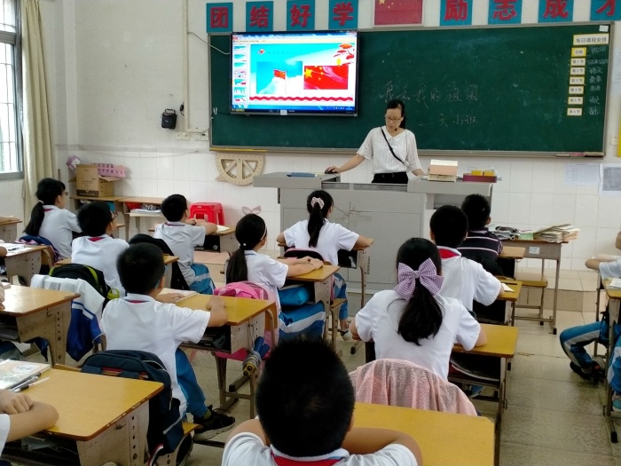 9月28日,光明小學(xué)開展“我和我的祖國”主題班會課。班會課上,同學(xué)們在跟著音樂一起唱起《我和我的祖國》,那激情洋溢的歌聲唱出孩子們心中對祖國的熱愛,唱響了孩子們對祖國深深地祝福。有的同學(xué)代表講述了愛國主義故事,給大家推薦愛國主義書籍,并結(jié)合愛國典型人物和事例講述自己的所學(xué)所感。他們在敘述對祖國的真情實感時,下定決心要為祖國的明天更加繁榮昌盛而努力學(xué)習(xí)。