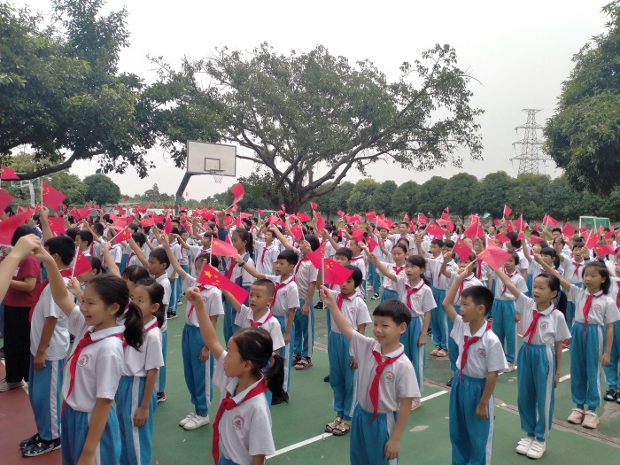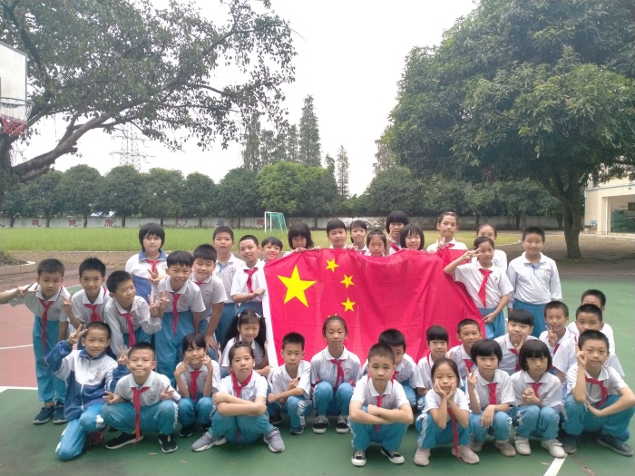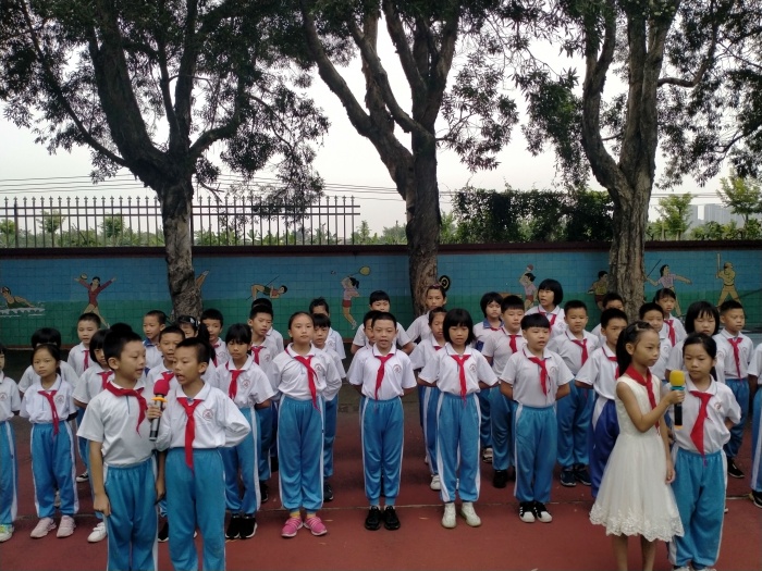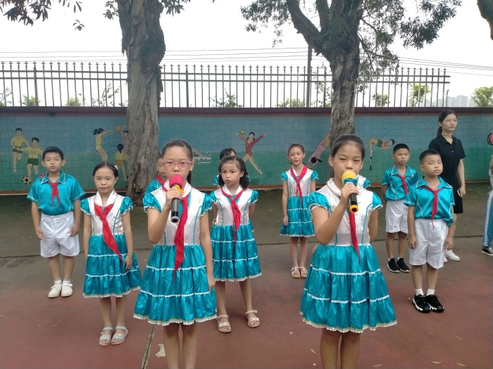在老師的帶領(lǐng)下,師生們揮動(dòng)著手中的小國(guó)旗,齊唱《我和我的祖國(guó)》,用飽含深情的歌聲表達(dá)對(duì)祖國(guó)母親的祝福。