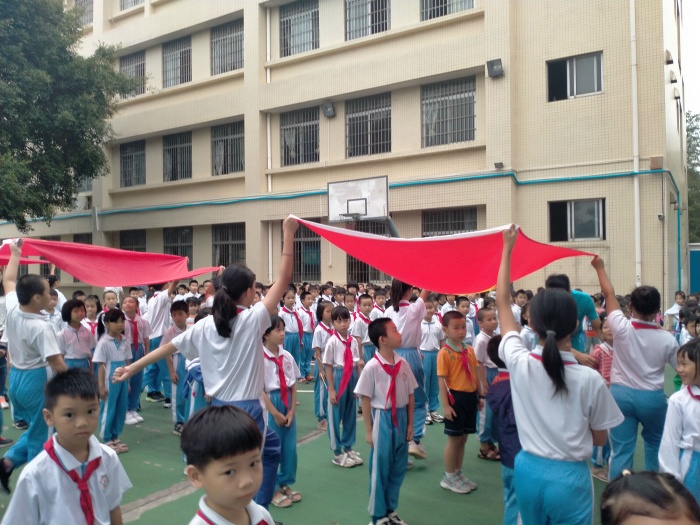 8點(diǎn)30分,主題活動(dòng)在莊嚴(yán)的升旗儀式中拉開(kāi)帷幕,整個(gè)會(huì)場(chǎng)秩序井然,在莊嚴(yán)的國(guó)歌聲中,鮮艷的五星紅旗緩緩升起,全體師生面向國(guó)旗肅立,少先隊(duì)員行隊(duì)禮,其他同學(xué)和老師行注目禮,在心中銘記五星紅旗的重要意義。
