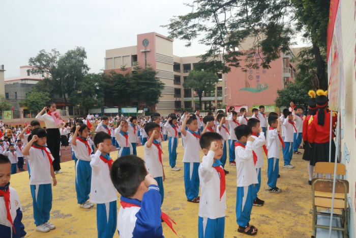 最后,廖樂(lè)詩(shī)老師帶領(lǐng)全體隊(duì)員呼號(hào):“準(zhǔn)備著,為共產(chǎn)主義事業(yè)而奮斗!”隊(duì)員們齊聲回答:“時(shí)刻準(zhǔn)備著!”入隊(duì)儀式在喜悅熱烈的氣氛中圓滿結(jié)束。