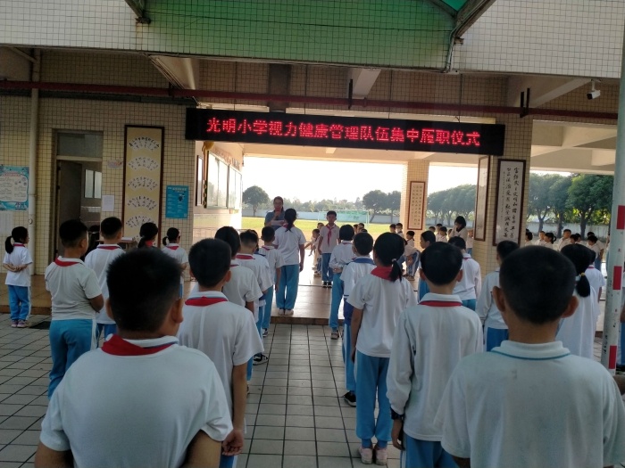 兒童是祖國的未來,眼睛是心靈的窗戶,保護眼睛應當從小做起。為進一步培養(yǎng)學生良好的用眼護眼習慣,三角鎮(zhèn)光明小學制定了預防近視工作實施方案,組建了學生視力健康管理隊伍,并于10月12日上午,舉行學生視力健康管理隊伍集中履職儀式。