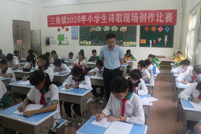 為了全面提高學(xué)生的語(yǔ)文綜合素養(yǎng),營(yíng)造一個(gè)良好的書香校園文化氛圍,進(jìn)一步激發(fā)學(xué)生習(xí)作興趣,培養(yǎng)良好的閱讀習(xí)慣,讓學(xué)生在習(xí)作與閱讀中體驗(yàn)成功與快樂,成為富有內(nèi)涵,身心和諧發(fā)展的孩子。10月13日,三角鎮(zhèn)語(yǔ)文教研組組織全鎮(zhèn)7所小學(xué)150多名四到六年級(jí)學(xué)生進(jìn)行了現(xiàn)場(chǎng)閱讀與創(chuàng)作競(jìng)賽,競(jìng)賽項(xiàng)目有:四年級(jí)現(xiàn)場(chǎng)作文創(chuàng)作、五年級(jí)閱讀能力理解、六年級(jí)現(xiàn)場(chǎng)詩(shī)歌創(chuàng)作。本次競(jìng)賽四海學(xué)校作為承辦單位,為競(jìng)賽提供了比賽場(chǎng)地以及后勤服務(wù)。