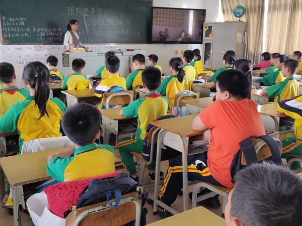 班會(huì)課上,班主任利用多媒體課件,通過(guò)展示圖片與文字、播放視頻,創(chuàng)設(shè)情境與學(xué)生互動(dòng)交流、競(jìng)答等多種方式,向同學(xué)們?cè)敿?xì)講解了“什么是登革熱”,“怎么預(yù)防登革熱”等基本知識(shí)。重點(diǎn)教會(huì)同學(xué)們要注意個(gè)人衛(wèi)生,野外活動(dòng)時(shí)要噴灑防蚊驅(qū)蚊藥,預(yù)防蚊子叮咬;身體出現(xiàn)不舒服要馬上告訴家長(zhǎng)、老師等等。