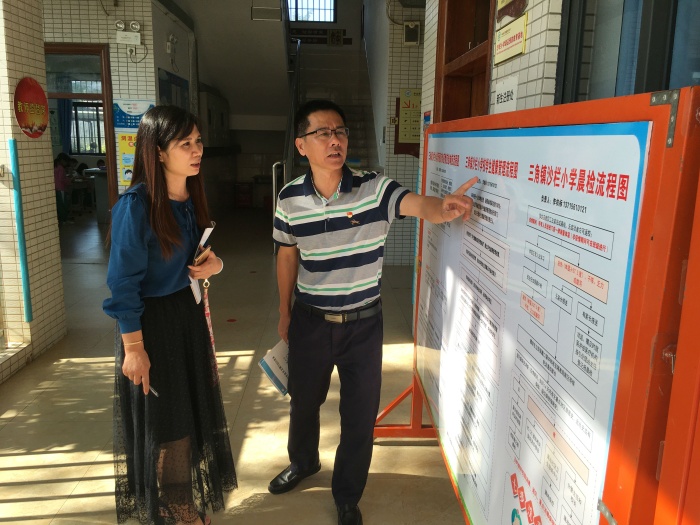 10月26日下午,三角鎮(zhèn)沙欄初級(jí)中學(xué)梁炳華校長蒞臨沙欄小學(xué)開展實(shí)地調(diào)研督導(dǎo)工作,通過校園巡視、隨機(jī)聽課、查閱資料、個(gè)性訪談等形式,對(duì)學(xué)?;厩闆r進(jìn)行了全面細(xì)致的調(diào)研。