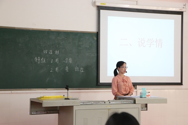 比賽分為兩個(gè)環(huán)節(jié),第一個(gè)環(huán)節(jié)是10分鐘的說(shuō)課展示,第二個(gè)環(huán)節(jié)是答辯。雖然時(shí)間緊、要求高,但7位參賽教師都胸有成竹、沉著應(yīng)戰(zhàn),相繼上臺(tái)進(jìn)行說(shuō)課。高平小學(xué)的黃秋燕老師是第一位選手,她的說(shuō)課內(nèi)容是《四邊形的初步認(rèn)識(shí)》,黃秋燕老師分別從說(shuō)教材、說(shuō)教學(xué)目標(biāo)、說(shuō)學(xué)情、說(shuō)教學(xué)重難點(diǎn)、說(shuō)教法學(xué)法、說(shuō)教學(xué)過(guò)程、說(shuō)板書(shū)設(shè)計(jì)這七個(gè)方面展示自己的說(shuō)課,用精妙的語(yǔ)言詮釋了自己對(duì)教材的獨(dú)特理解和匠心設(shè)計(jì),給大家描繪出了一個(gè)生動(dòng)的課堂,展現(xiàn)出教育的智慧和個(gè)人的獨(dú)特風(fēng)采。最終,黃秋燕老師以全場(chǎng)第二名的高分獲得三角鎮(zhèn)說(shuō)課比賽的一等獎(jiǎng)。