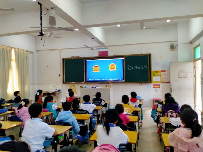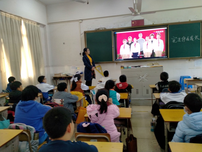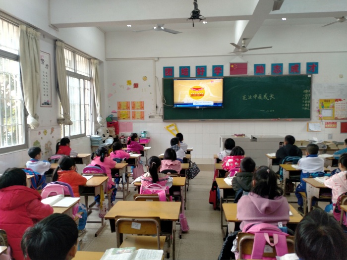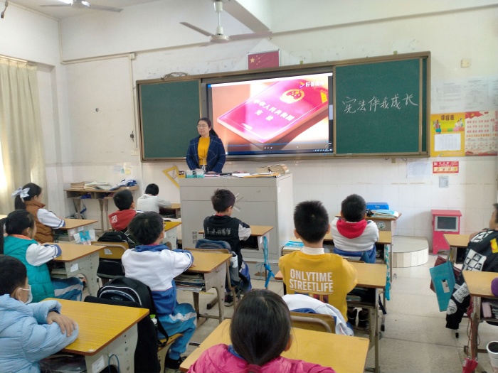 12.4國家憲法日, 光明小學(xué)開展“晨讀憲法“和“憲法伴我成長”主題班會。班會上,班主任利用自己精心制作的課件,生動有趣的動畫,向同學(xué)們進(jìn)行了形象的講解:2014年11月1日第十二屆全國人民代表大會常務(wù)委員會第十一次會議通過決議,將12月4日設(shè)立為國家憲法日。憲法是國家的根本大法,它規(guī)定了國家的根本制度和根本任務(wù),是人們行為的基本法律準(zhǔn)則。班主任們用通俗易懂的話語,向?qū)W生介紹學(xué)習(xí)憲法的重要意義。