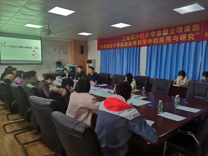 2020年12月25日下午,三角鎮(zhèn)沙欄小學英語市級立項課題“簡筆畫在小學英語故事教學中的應用研究”中期檢查報告會,在沙欄小學謙和樓五樓會議室順利舉行。中山市教研室張?zhí)﹦偫蠋?、辛鍵老師、何娟老師,三角鎮(zhèn)教育事務中心段子元主任、英語教研員吳萍老師蒞臨會場。沙欄小學崔煥英校長、黎文輝副校長、黃桂容主任及全體課題組成員參加了此次會議,此外,與會人員還有三角鎮(zhèn)各兄弟學校的骨干教師代表。