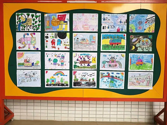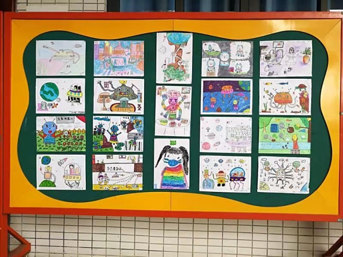 首先,各班組織學生開展了“科技創(chuàng)新繪畫”比賽活動,要求人人發(fā)揮想象,動手畫一畫。然后,由學校的專職美術(shù)老師在課堂上指導學生如何創(chuàng)新、暢想,緊扣主題進行科技創(chuàng)新繪畫。最后,各班班主任在11月13日前評選出5份創(chuàng)意新穎的作品上交到學校進行評比。作品內(nèi)容精彩紛呈,有的學生以創(chuàng)新能源為主題,有的學生以環(huán)保為主題,有的學生以未來為主題,通過蠟筆、水彩筆畫等形式反映了未來科技和未來世界,一幅幅科幻畫展現(xiàn)了一個個充滿想象的世界,從而開啟學生們心中美好的愿景。隨后,由領(lǐng)導和美術(shù)老師認真仔細地評審,36份作品脫穎而出獲得一等獎,54份獲得二等獎。獲獎作品在謙和樓一樓進行了展出。