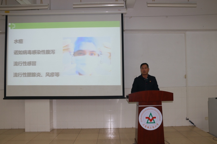 緊接著,陳校長以《學校冬季常見傳染病及防控要求》為題,從學校冬季常見傳染病、常見傳染病隔離期限及疫情報告標準、智立方管理平臺預警處理流程三個方面詳細解讀了當前學校傳染病的形勢與任務,并從傳染病的病原學、流行病學特征等方面為大家介紹了學校常見的水痘、諾如病毒感染性腹瀉、流行性感冒、流行性腮腺炎、風疹等傳染性疾病的一般知識和防治措施,為進一步做好學校衛(wèi)生工作提供了非常好的建議和思路。