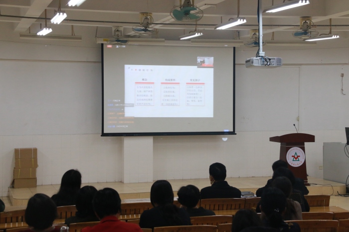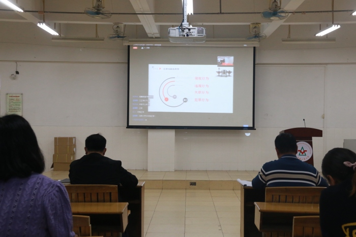 講座中,沈律師從《中華人民共和國(guó)教師法》和《未成年人保護(hù)法》入手,通過(guò)“教師工作中的法律風(fēng)險(xiǎn)”和“以案說(shuō)法”兩個(gè)環(huán)節(jié)解析相關(guān)案件,明確教師的權(quán)利保護(hù)和行為規(guī)范。首先,沈律師通過(guò)生動(dòng)的語(yǔ)言和典型案例,明確教師的教育義務(wù)和法律義務(wù),并建議教師們利用好空余時(shí)間,通讀諸如《未成年人保護(hù)法》及《中華人民共和國(guó)教師法》等與教師職業(yè)相關(guān)的法律,豐富自己的法律法規(guī)知識(shí)。其后,沈律師向大家提出了“侵權(quán)行為”“違規(guī)行為”“失職行為”“犯罪行為”的明確界限。他告誡教師們,廣大教育工作者應(yīng)當(dāng)按照法律法規(guī)履行自身的職責(zé),按要求做好相關(guān)教育工作,嚴(yán)禁違反職業(yè)道德。