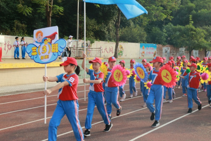 8時(shí)許,所有嘉賓領(lǐng)導(dǎo)入座后,田徑運(yùn)動(dòng)會(huì)開幕式在激昂奮進(jìn)的《運(yùn)動(dòng)員進(jìn)行曲》中正式開始。首先出場(chǎng)的是三角小學(xué)麒麟舞代表隊(duì),他們傳承歷史,舞動(dòng)青春,帶著活潑有力,青春自由的身姿經(jīng)過了舞臺(tái)。隨后是各班級(jí)代表隊(duì)入場(chǎng)。高年級(jí)的同學(xué)邁著整齊劃一,堅(jiān)定有力的步伐走來,他們自信自強(qiáng);中年級(jí)的同學(xué)來到舞臺(tái)后整齊響亮的口號(hào)以及精心策劃的動(dòng)作造型引來了觀眾的陣陣掌聲;低年級(jí)的同學(xué)們活潑可愛,小步入場(chǎng),帶來了無限的青春與活力。