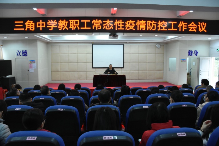 ——三角中學(xué)召開(kāi)教職工常態(tài)性疫情防控工作會(huì)議發(fā)布時(shí)間:2020-12-18 16:27 信息來(lái)源:本網(wǎng)站 瀏覽次數(shù):0