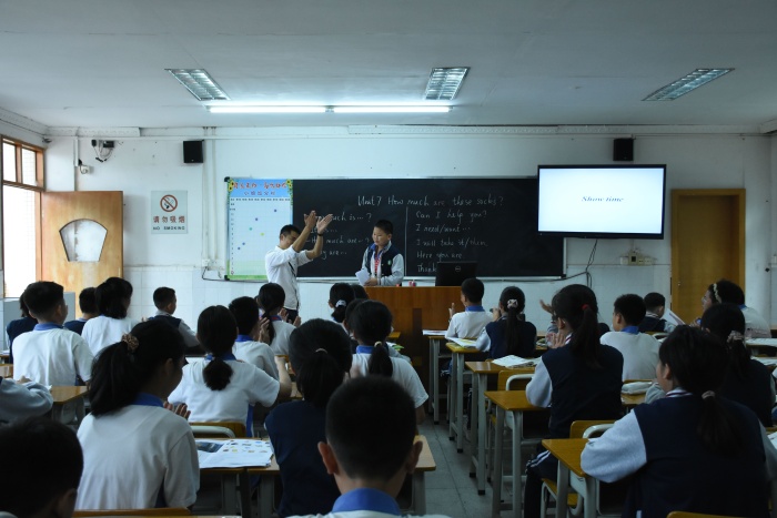 活動分成兩大部分,首先由三角中學(xué)的廖玉婷老師、沙欄初級中學(xué)的林騰新老師分別上了一節(jié)Book7上Unit7 How much are these socks? 第一課時的聽說課。課堂上,兩位老師呈現(xiàn)了各自的年輕優(yōu)勢,課堂活力四射,互補共進(jìn)。課堂上廖老師準(zhǔn)備充分,強調(diào)真實語境的創(chuàng)設(shè),通過Guessing game,帶出詞匯學(xué)習(xí)。聽力部分,注重微技能訓(xùn)練,課件制作精美。如果在訓(xùn)練學(xué)生的功能語言上,強調(diào)一下學(xué)生的交際語:Can I help you? Thank you 等目標(biāo)語,效果會更佳。林老師注重從非智力因素培養(yǎng)學(xué)生,注重獎勵機制的實施,讓學(xué)生積極參與課堂。還有輸出環(huán)節(jié),注重與時俱進(jìn),讓學(xué)生付款用二維碼方式。兩節(jié)課各有千秋,精彩紛呈。