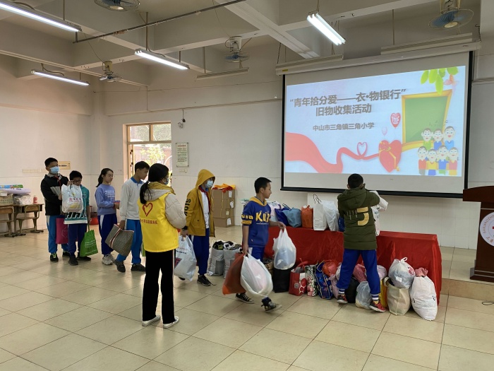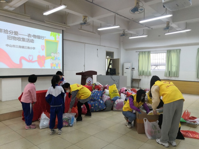 為積極響應(yīng)中山市少工委倡議,弘揚(yáng)愛心傳播精神,提高垃圾分類、舊物化寶的環(huán)保意識(shí)、生態(tài)意識(shí),引領(lǐng)廣大青少年做力所能及的環(huán)保行動(dòng),1月6日下午,三角小學(xué)組織開展“青年拾分愛——衣?物銀行”舊物收集活動(dòng),為困難人群送上溫暖的問候。