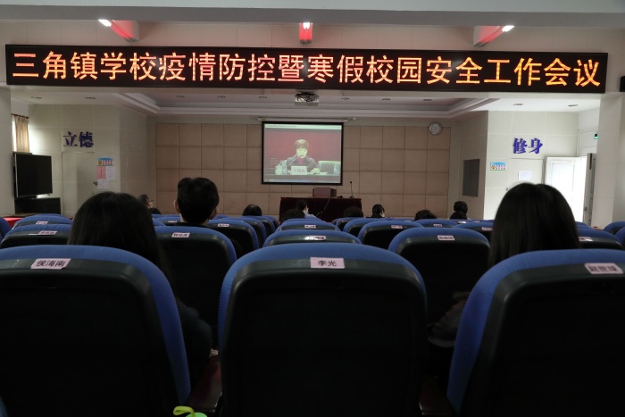 為進(jìn)一步落實(shí)寒假期間校園疫情防控及寒假校園安全工作,根據(jù)省市有關(guān)通知要求,2021年1月5日,下午,三角鎮(zhèn)召開全鎮(zhèn)學(xué)校學(xué)校疫情防控暨寒假校園安全工作會(huì)議。會(huì)議主會(huì)場(chǎng)設(shè)在三角中學(xué)報(bào)告廳,全鎮(zhèn)其他中小學(xué)校設(shè)有分會(huì)場(chǎng),三角鎮(zhèn)領(lǐng)導(dǎo)、教體中心人員、各中小學(xué)教師參加了會(huì)議。