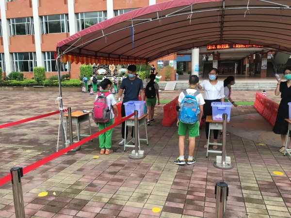 三角鎮(zhèn)中心小學(xué)從嚴(yán)從實(shí)從細(xì)把關(guān),切實(shí)做好校園疫情防控工作,并先后組織開展了四次開學(xué)模擬演練,最大限度保障學(xué)生復(fù)課安全。早上7點(diǎn),三角鎮(zhèn)中心小學(xué)的教職員工已經(jīng)全部就位,他們各司其職,按照“錯(cuò)峰”入校的要求,引導(dǎo)同學(xué)們走進(jìn)久違的課堂。
