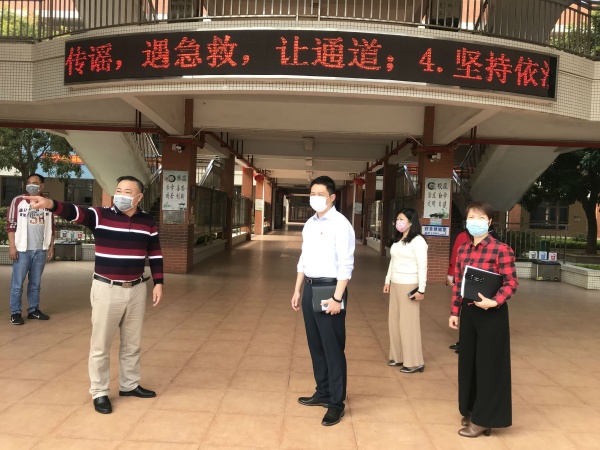 首先,三角鎮(zhèn)中心小學周榮純校長陪同三位領(lǐng)導巡視校園環(huán)境,了解新教學樓進展情況,詢問學校防控物資儲備等防疫工作落實情況。