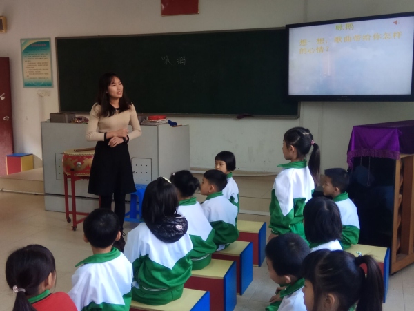 在本次課例展示活動(dòng)中,梁麗那老師執(zhí)教了一年級(jí)的音樂課《詠鵝》。在這節(jié)課中, 梁老師根據(jù)本課的實(shí)際,結(jié)合音樂課題把中國(guó)鼓引進(jìn)教學(xué)過(guò)程中,運(yùn)用中國(guó)鼓來(lái)創(chuàng)設(shè)教學(xué)氣氛。