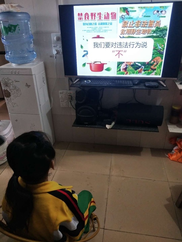 同學(xué)們首先觀看了一個(gè)“保護(hù)大自然,珍愛眾生命”的主題班會(huì)課件視頻。通過觀看視頻,同學(xué)們了解到生物多樣性是構(gòu)成和諧大自然的重要組成部分。人與自然和諧相處才能更好地促進(jìn)社會(huì)的發(fā)展。但是現(xiàn)今人類無情地剝奪與殺害野生動(dòng)物,導(dǎo)致了大自然的不平衡與反噬。東非蝗災(zāi)與澳洲森林大火都是人類沒有做好保護(hù)大自然的行動(dòng)而受到的懲罰。今年席卷全球的新冠病毒的傳播則是因?yàn)槿藗儾稓ⅰ⑹秤靡吧鷦?dòng)物而造成的。同學(xué)們通過對相關(guān)事件進(jìn)行了了解后,加深了“人與自然”、“人類與野生動(dòng)物”的認(rèn)識(shí),使他們認(rèn)識(shí)到保護(hù)大自然,珍愛生命要從自己做起,要從身邊的小事做起,節(jié)約用水,綠色出行,拒絕捕殺、食用野生動(dòng)物,做好垃圾分類等等。同時(shí)還樹立了要好好對待身邊的每一個(gè)生命:一只飛鳥、一棵小樹、一朵小花,這些都是生命,它們都是大自然不可或缺的一部分。