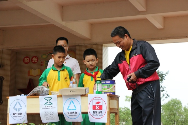 到了緊張而激烈的“垃圾分類我最快”環(huán)節(jié),由四年級(jí)每班2個(gè)代表參賽,要求兩名代表在30秒鐘內(nèi)迅速將垃圾分類,看哪個(gè)班的代表分得又快又準(zhǔn)。場(chǎng)上的代表聚精會(huì)神,井然有序地把垃圾按要求分類,場(chǎng)下的觀眾傳出陣陣的加油聲和歡呼聲,把現(xiàn)場(chǎng)氣氛推向高潮。接著進(jìn)行“垃圾分類投放,看看誰(shuí)最棒”環(huán)節(jié),五、六年級(jí)每班派四名代表將事先在校園內(nèi)撿到的垃圾投到分類垃圾桶,并在投放過(guò)程中,向全校同學(xué)介紹手中拿的是什么垃圾,應(yīng)該投放到哪個(gè)分類垃圾桶?,F(xiàn)場(chǎng)的同學(xué)們用熱烈的掌聲,表?yè)P(yáng)五六年級(jí)的大哥哥大姐姐為凈化校園環(huán)境,為做好垃圾分類獻(xiàn)出自己的一份力。最后,全校師生莊重承諾:做好垃圾分類,共建美好家園!活動(dòng)在莊嚴(yán)而整齊的承諾聲中結(jié)束。