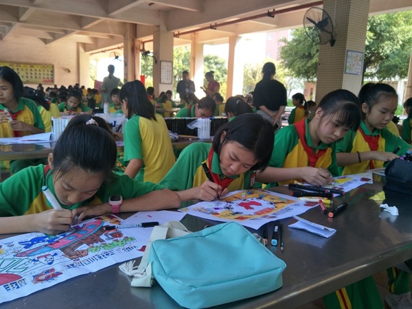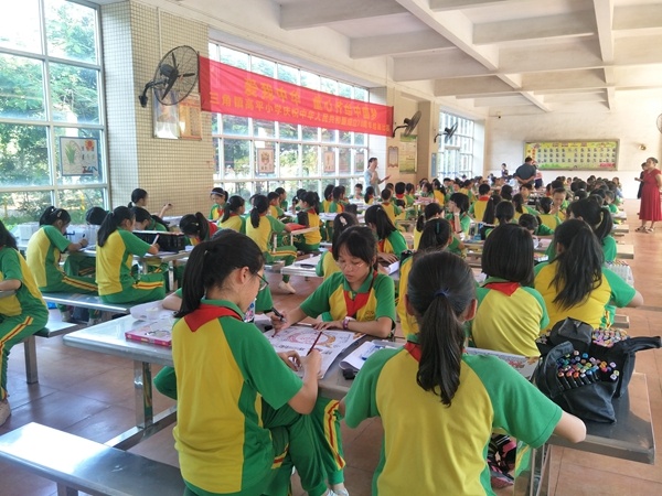 本次活動(dòng)由1—6年級(jí)每班5名學(xué)生齊聚一樓大堂學(xué)生就餐處進(jìn)行現(xiàn)場(chǎng)繪畫?;顒?dòng)現(xiàn)場(chǎng),先由德育處李姚清主任宣布此次繪畫比賽的要求和規(guī)則,而學(xué)生們拿出早已準(zhǔn)備好的美術(shù)工具端正地坐在座位上。比賽剛開始,學(xué)生們根據(jù)主題的要求,一個(gè)個(gè)沉默不語地在認(rèn)真地構(gòu)思,在將近一個(gè)半小時(shí)的繪畫過程中,他們拿起手中的畫筆奮筆疾畫,經(jīng)歷構(gòu)圖、勾線、填色等步驟,勾勒出一幅幅色彩明麗、充滿童真的圖畫,這些精彩作品的背后都飽含著學(xué)生對(duì)祖國深切的情感。最后,評(píng)委們通過客觀公正的評(píng)定,學(xué)生的作品分年級(jí)分別評(píng)出了一等獎(jiǎng)6名,二等獎(jiǎng)8名,三等獎(jiǎng)若干名,獲獎(jiǎng)作品統(tǒng)一在學(xué)校展板展出。