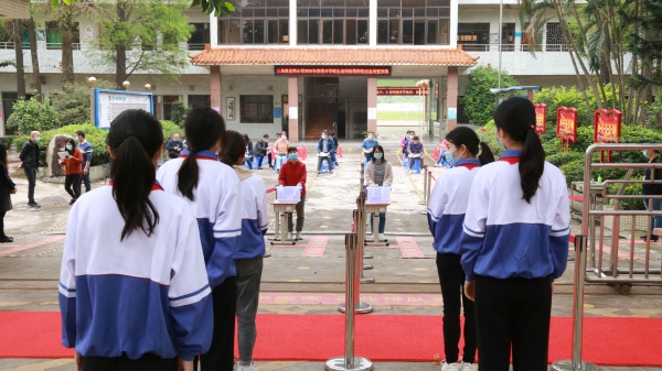 上午10:30演練正式開始,本次演練分七個(gè)場景全方位、全流程、全仿真進(jìn)行模擬:1.師生入校管理演練、乘坐校車的學(xué)生上車和入校的演練,“學(xué)生”和教師進(jìn)校,保安和值日教師在崗測溫、登記,接著是乘坐校車的學(xué)生上車、入校的流程演練;2.課室上課突發(fā)異常情況演練,這個(gè)環(huán)節(jié)展示了保潔人員對(duì)教室消毒、學(xué)生在課室上課時(shí)發(fā)病、護(hù)送到隔離室、對(duì)全班學(xué)生進(jìn)行測溫排查、安撫余下學(xué)生等過程;3.隔離室詢問、觀察場景的演練,模擬如何處置有疑似病例的學(xué)生的全過程。其余的四個(gè)場景都在會(huì)議室通過視頻進(jìn)行展示:1.教室就餐場景演練;2.各層次負(fù)責(zé)人匯報(bào)情況演練;3.學(xué)校疫情防控工作小組準(zhǔn)備會(huì)場景演練;4.啟動(dòng)應(yīng)急預(yù)警的會(huì)議場景演練。演練結(jié)束后,鎮(zhèn)疾病控制預(yù)防中心負(fù)責(zé)人對(duì)演練進(jìn)行了點(diǎn)評(píng)。