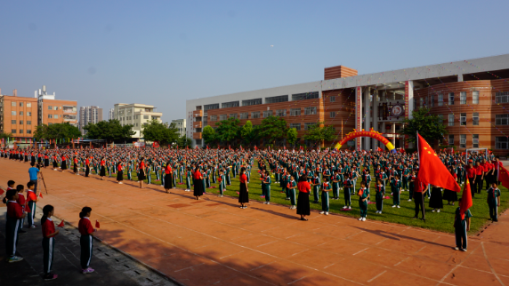 其中全員齊唱《歌唱祖國(guó)》這環(huán)節(jié)更是把活動(dòng)推向高潮,伴隨著慷慨激昂的歌聲,紅旗隊(duì)隊(duì)員們手持鮮艷的五星紅旗圍著操場(chǎng)奔跑,神采奕奕,青春煥發(fā)。場(chǎng)內(nèi)的師生笑面如花,手中整齊地?fù)]舞著小紅旗和鮮花,整個(gè)操場(chǎng)變成了紅色的歡樂(lè)的海洋。在嘹亮的歌聲中,在小紅旗和鮮花的簇?fù)硐?,“振興中華”四個(gè)大字緩緩地出現(xiàn)在隊(duì)伍的正中,那樣鮮艷、那樣莊嚴(yán)、那樣動(dòng)人心弦。