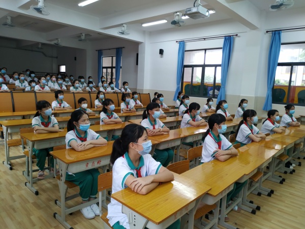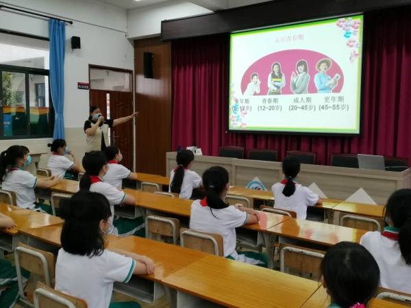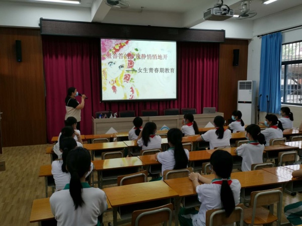 該講座由大隊輔導(dǎo)員杜老師主講,五年級女生均戴上口罩,相隔一個位置參加了專題教育講座。講課過程中,杜老師用幽默生動的語言,深入淺出地告訴同學(xué)們什么是青春期,指出青春期女生生理的變化和自我保護措施。接著,杜老師舉了很多同學(xué)們平時最關(guān)心、也是比較敏感的實例,引導(dǎo)她們學(xué)會如何保護自己,愛惜自己,做一個陽光快樂的女生。