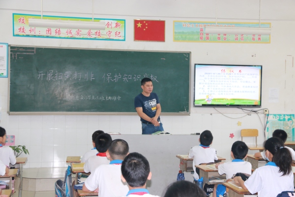 為切實保護(hù)未成年人身心健康、積極營造良好的校園文化環(huán)境,進(jìn)一步深化“掃黃打非”進(jìn)校園工作,全面引導(dǎo)師生遠(yuǎn)離“黃”“非”毒瘤,自覺養(yǎng)成良好的生活學(xué)習(xí)習(xí)慣,打造陽光健康、積極向上的精神家園,2020年6月8日上午,三角小學(xué)舉行了“掃黃打非,保護(hù)知識產(chǎn)權(quán)”主題班會活動。