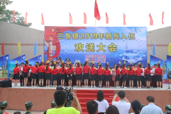 三角小學(xué)少先隊(duì)鼓號隊(duì)在主持學(xué)校全面工作的陳見洪副校長、王輝副校長、霍廣耀主任、許嘉天、吳同科、吳麗瓊、周嘉欣、綦鑫等老師的帶領(lǐng)下,組織了一支由70名學(xué)生組成的隊(duì)伍參加了此次新兵入伍歡送儀式。