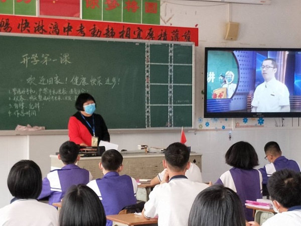 班主任上好了“復(fù)學(xué)第一課”,統(tǒng)一觀看了《天使歸來(lái),英雄開講》視頻。用抗疫英雄故事,進(jìn)行防控知識(shí)培訓(xùn)和心理健康教育。最后,還組織同學(xué)們學(xué)習(xí)了《一日規(guī)范》、《中山市沙欄初級(jí)中學(xué)初三學(xué)生中午配餐管理方案》。據(jù)悉,為確保就餐時(shí)的安全距離,學(xué)生中午就餐分成兩個(gè)教室。所以,班主任帶領(lǐng)大家分班演練洗手、中午就餐等一日規(guī)范和應(yīng)急處置。到了放學(xué)時(shí)間,按班級(jí)順序,由班主任組織本班學(xué)生按一米以上的間距排好隊(duì),分批有序出校門離校。