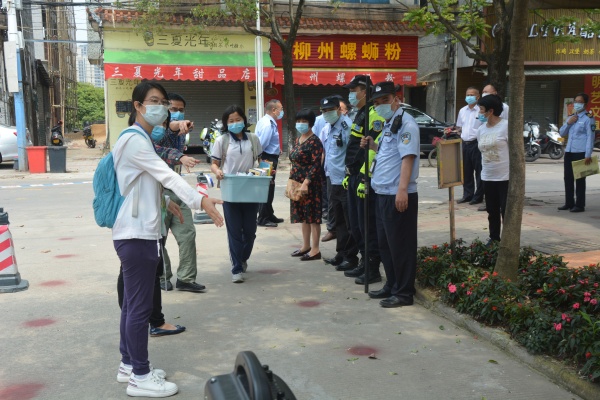 為了確保學(xué)生順利入校,三角鎮(zhèn)鎮(zhèn)長(zhǎng)李凱航、黨委副書記楊劍輝、副鎮(zhèn)長(zhǎng)楊紹平等領(lǐng)導(dǎo)也來(lái)到沙欄中學(xué)門口,現(xiàn)場(chǎng)指導(dǎo)學(xué)生入校工作,檢查校園周邊安保情況,疏導(dǎo)學(xué)生入校時(shí)的交通,鎮(zhèn)公安、交警、綜合執(zhí)法、衛(wèi)生、疾病防控等部門的領(lǐng)導(dǎo)和專業(yè)人員出一同到校幫助學(xué)生進(jìn)行入校檢測(cè)。
