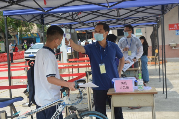 最漫長(zhǎng)“寒假”終于結(jié)束了,中山首批學(xué)子正式返校復(fù)課。4月27日下午,沙欄中學(xué)第一批師生順利返校上課。中午,值日行政、值日教師早早就在校門口等候。值日行政負(fù)責(zé)維持入校的秩序和紀(jì)律,提醒學(xué)生在校門口等候時(shí)要保持間距1米以上,防止學(xué)生聚集,值日老師耐心地為學(xué)生測(cè)量體溫、進(jìn)行手消毒。初三學(xué)生分兩批進(jìn)校、按秩序排隊(duì)。測(cè)體溫正常后方可進(jìn)課室,課室門口有老師負(fù)責(zé)引導(dǎo)學(xué)生就座,課室里學(xué)生們的座位都間隔在1米以上。同學(xué)們?nèi)胱?,班主任開始逐個(gè)安撫學(xué)生情緒。為了安全有序迎接學(xué)生返校,學(xué)校制定了《沙欄中學(xué)新冠肺炎疫情防控期間開學(xué)日方案》、《沙欄初級(jí)中學(xué)班級(jí)一日工作清單》及《初三學(xué)生錯(cuò)峰返校方案》等多個(gè)詳細(xì)方案。