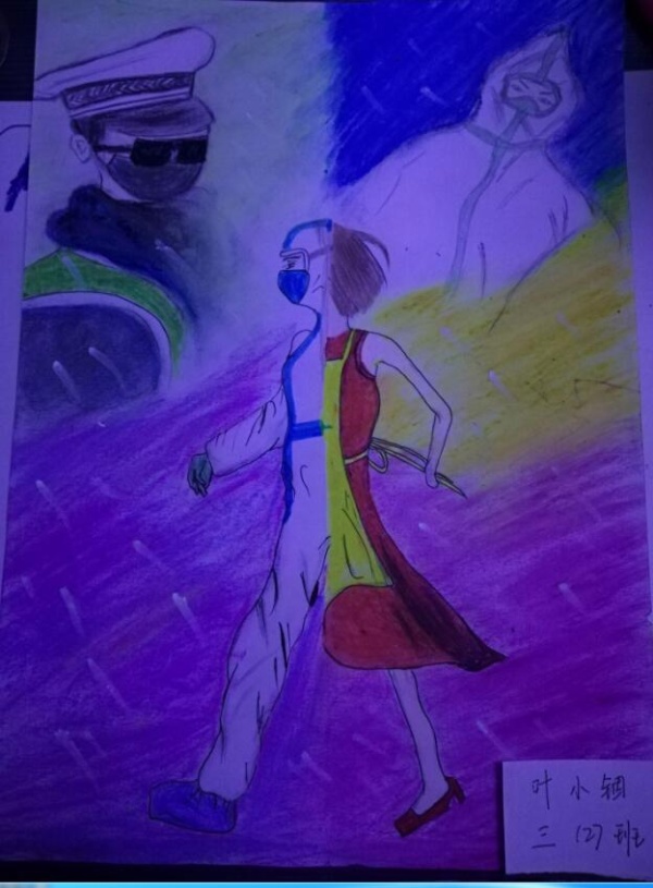 選手們用畫筆禮贊戰(zhàn)疫感人事跡,用藝術謳歌最美“逆行者”,創(chuàng)作出一幅幅振奮精神、鼓舞士氣、傳播積極向上正能量的優(yōu)秀作品。三(3)班的劉祥羽的作品《與死神搶時間》描繪出醫(yī)護人員緊急救護的場景,二(3)班楊桂珍的作品《加油》用獨特的方式提醒大家做好防護。選手們的作品內(nèi)容充實,感染力強,主要圍繞在疫情防控一線的醫(yī)務人員和其他工作人員加油打氣,為“逆向而行”的先鋒致敬,向他們送上真摯的祝福:“叔叔阿姨加油!我就在您的身后!”