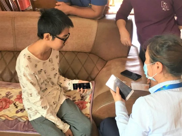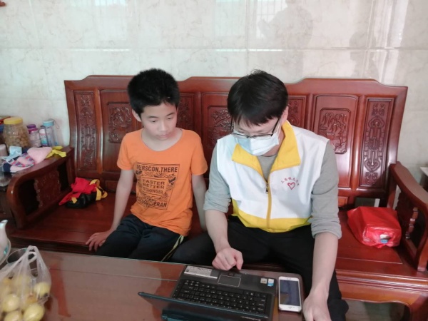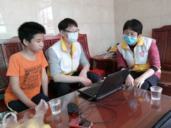 首先是就讀初二的張同學(xué)家,志愿者為他安裝好閑置電腦后指導(dǎo)學(xué)生使用釘釘軟件。接著來到初一的黃同學(xué)家,移動公司為其安裝了寬帶并免費(fèi)提供兩個(gè)月的網(wǎng)絡(luò)。志愿者正在電腦前指導(dǎo)學(xué)生如何接收作業(yè)、上交作業(yè)。另外一名初一的梁同學(xué),收到了一臺智能手機(jī),移動公司幫他開通學(xué)習(xí)流量卡,實(shí)現(xiàn)線上學(xué)習(xí)不斷網(wǎng),保證線上教育正常進(jìn)行。