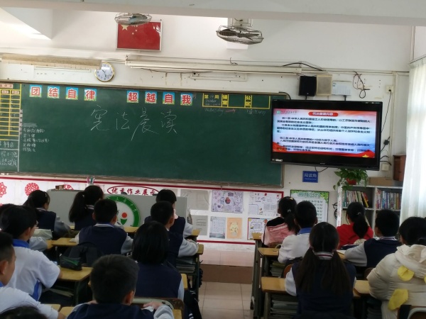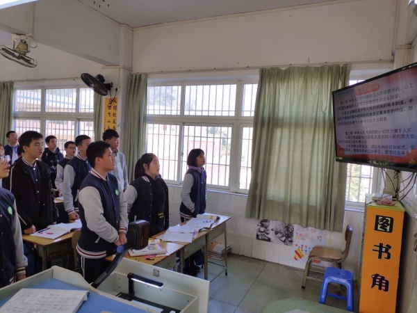 今天是第六個(gè)國(guó)家憲法日,也迎來(lái)了憲法宣傳周。為了開(kāi)展憲法宣傳、弘揚(yáng)憲法精神、讓中學(xué)生學(xué)習(xí)憲法,提高法律意識(shí)。12月4日三角中學(xué)利用晨讀時(shí)間,全校各班在教室里由班長(zhǎng)帶讀憲法(摘選),并抽調(diào)近300名學(xué)生在報(bào)告廳觀看直播,并進(jìn)行 “爭(zhēng)做守法中學(xué)生” 宣誓活動(dòng)。