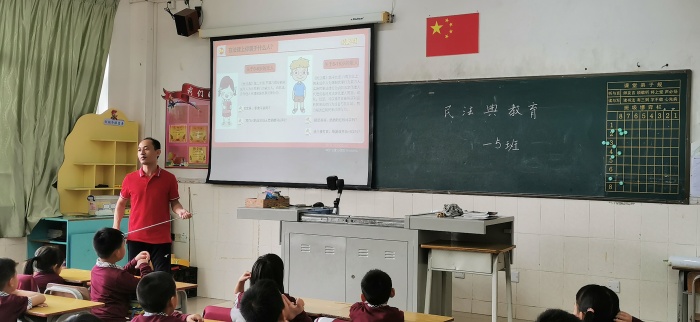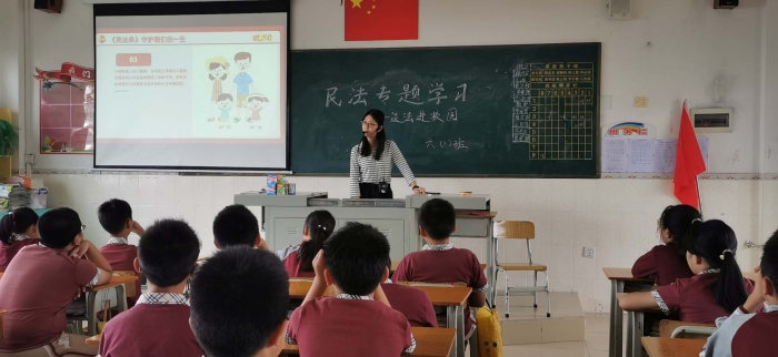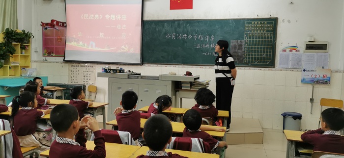 為幫助青少年樹立良好的法治觀念,增強青少年的法治安全意識,2020年10月28日上午11:20,新圩小學誠邀廣東銘興律師事務所陳路芳律師來到學校,為全體師生開展《民法典》普法宣講活動,其中四年級學生到階梯室現(xiàn)場聽課。