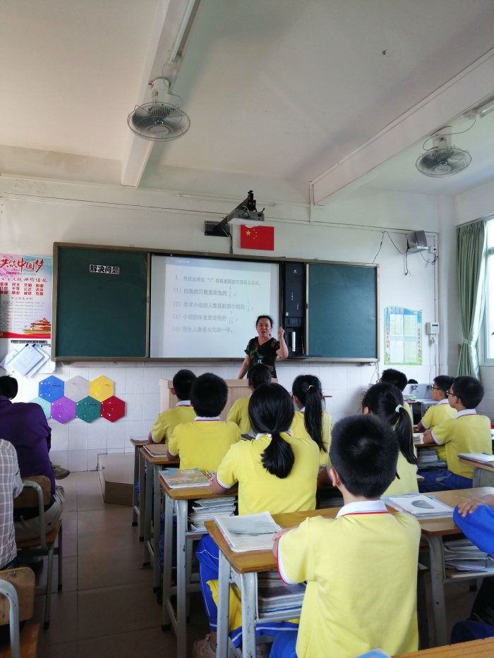 接著由吳桂珍老師給東華學(xué)校六(6)班的同學(xué)帶來了一節(jié)《解決問題》,吳老師首先帶著同學(xué)們復(fù)習(xí)了解決問題的一般過程,突出分?jǐn)?shù)解決問題的關(guān)鍵——把握單位“1”。再引導(dǎo)學(xué)生根據(jù)題目條件畫線段圖,列關(guān)系式,再列方程解答。并在學(xué)生思考交流的基礎(chǔ)上,從不同角度用多種方法解決問題,發(fā)展了學(xué)生的幾何直觀和創(chuàng)新意識(shí)。吳老師豐富的教學(xué)經(jīng)驗(yàn)給聽課老師留下了深刻的印象。