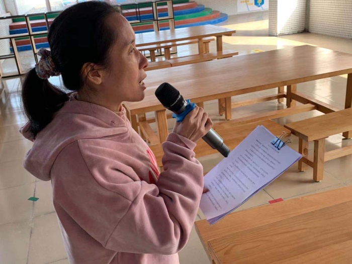 會議伊始,全校齊唱《憲法伴我們成長》歌曲,歌聲悠揚,飄蕩在校園中,令人振奮。隨后,全體師生共同觀看了“憲法晨讀”活動。