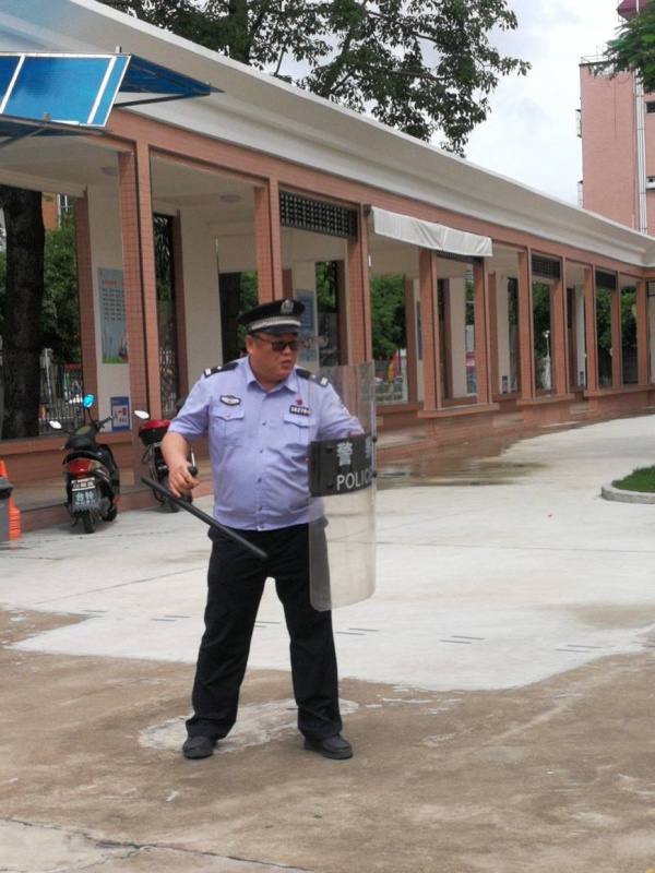 隨后,葉警官針對在校園范圍內(nèi)可能發(fā)生的突發(fā)性恐怖襲擊,組織大家學習了“暴徒”突然闖進學校,如何冷靜應對、與其周旋等待警方支援的技巧,為了提高大家快速有效地應對突發(fā)事件的能力,現(xiàn)場還進行了模擬演練:“暴徒”沖進校園,安保人員迅速出動一個舉著盾牌沖在最前面,攔住“暴徒”,一個高舉防暴叉,攔腰按住“暴徒”其余人迅速上前圍剿,與其周旋等待警方支援。最終“暴徒”被按在地。整個演練過程組織有序,大家配合默契,達到了演練的預期目的。