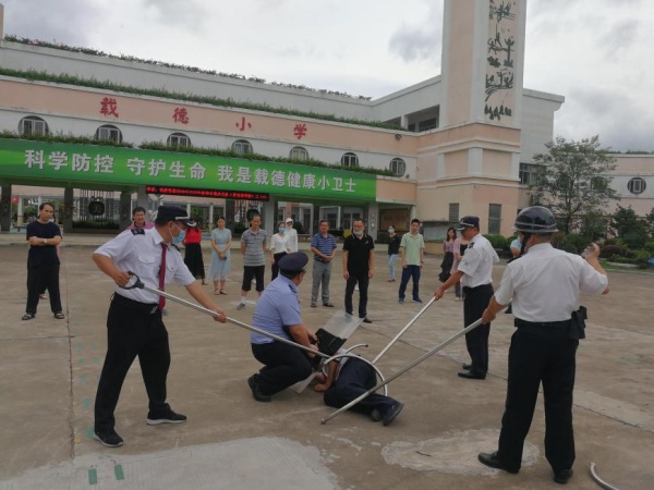 為了提高學校應對突發(fā)事件能力,全面提升學校安保人員和教職員工的安全意識和應急能力,進一步構建和諧平安校園,2020年6月9日三鄉(xiāng)鎮(zhèn)載德小學結(jié)合學校實際情況,開展了安保應急處置演練。