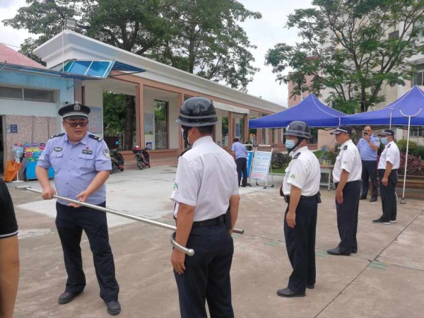 在演習前,駐校民警葉青同志為保安和在場的老師講解了反恐防暴知識,教會大家如何使用安防器械,以及對敵格斗要領和自我防護等內(nèi)容,還現(xiàn)場演示了各種反恐防暴器具的使用方式。