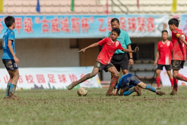 隨著入場(chǎng)曲的響起,伴著載德小學(xué)足球啦啦隊(duì)員們的熱烈呼喊。激動(dòng)人心的決賽正式拉開(kāi)帷幕。迎著一聲聲“三鄉(xiāng),加油!三鄉(xiāng),加油!”的歡呼,功夫足球隊(duì)順利奪下一分。盡管功夫小子們頂著烈日,踏著泥潭,卻不畏艱辛,懷著夢(mèng)想繼續(xù)馳騁在田徑賽場(chǎng)上。