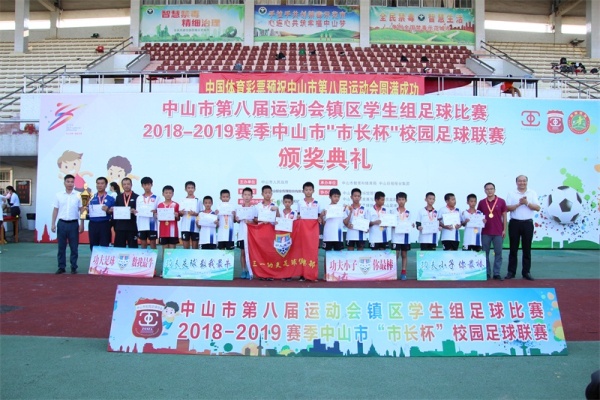 三鄉(xiāng)鎮(zhèn)載德小學(xué)功夫足球隊(duì)繼榮獲“市長(zhǎng)杯”冠軍后,2019年6月3日,又取得了一項(xiàng)殊榮——捧回了沉甸甸的中山市第八屆市運(yùn)會(huì)小學(xué)生足球比賽決賽冠軍獎(jiǎng)杯!